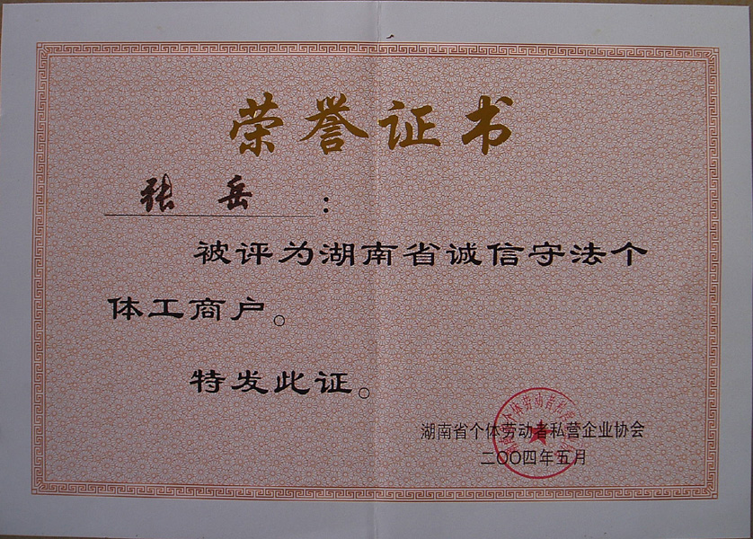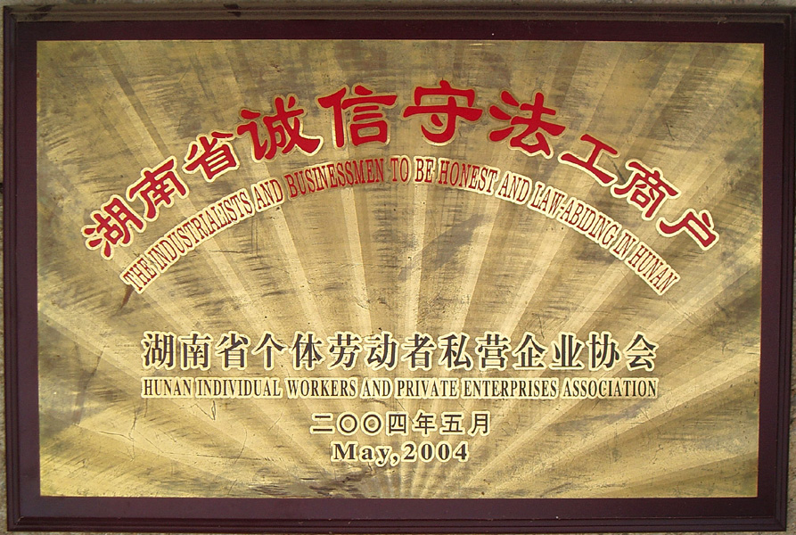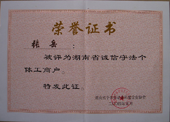 湖南省誠(chéng)信守法工商戶 |