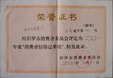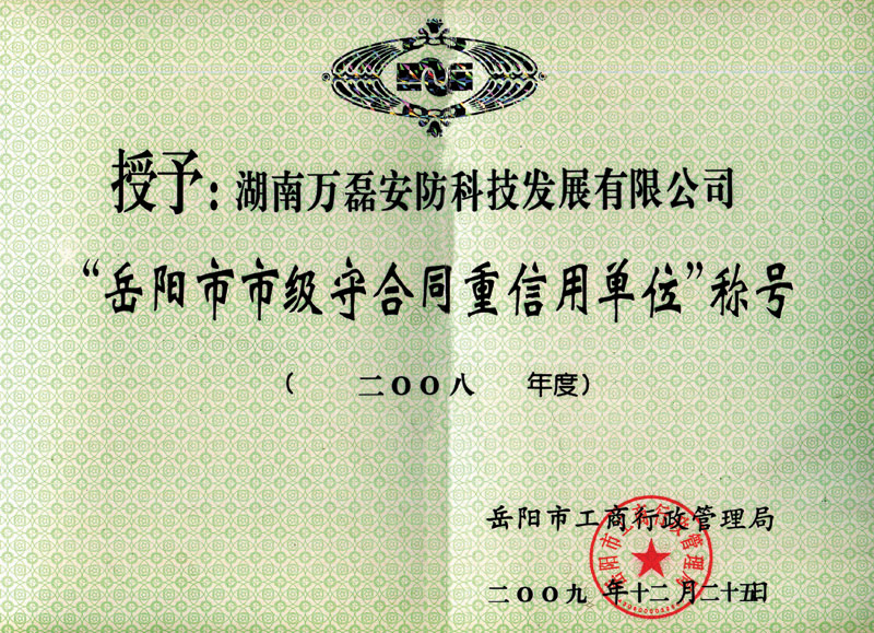 2008年岳陽(yáng)市名牌產(chǎn)品榮譽(yù)證書 |